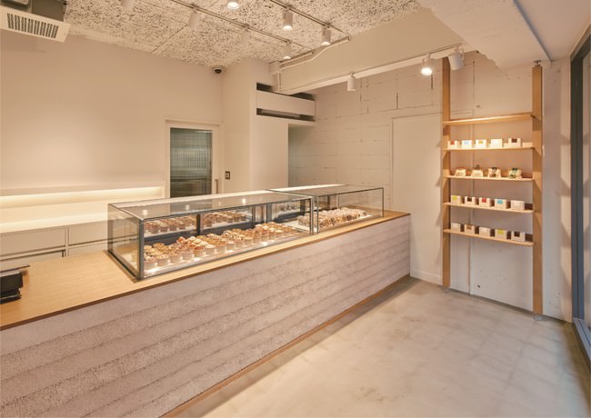 空間づくりにも「craft & product」の考え方を反映し、量産されるプロダクトのような無駄のない空間に、生産者の手仕事に由来する素材感を組み合わせました。シンプルで余白のある空間をステージに、素材を生かしたスイーツの個性が発揮されることをイメージしています。
