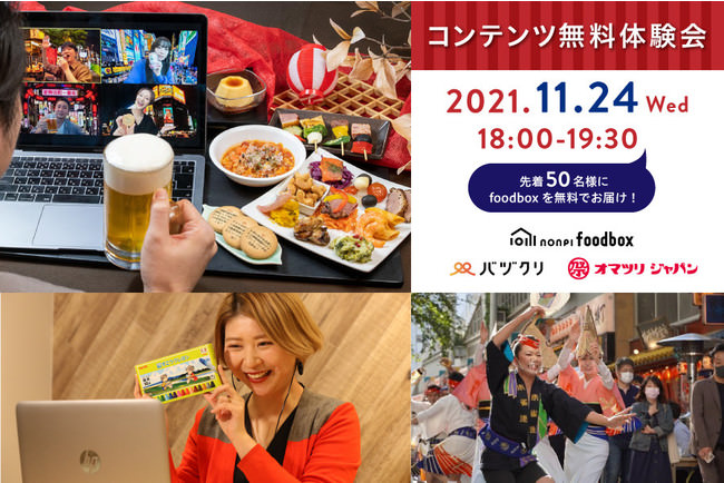 “日本全国に料理と飲み物を1箱にしたフードボックス”をお届けする『nonpi foodbox™』を展開する株式会社ノンピ(本社:東京都港区、代表取締役社長 :柿沼寛之)は、2021年11月24日(水)に「コンテンツ無料体験会」をオンライン開催します。