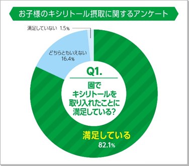 ロッテは、2020年10月より自治体や地元歯科医師会の協力のもとキシリトールを通じた歯と口の健康維持を全国に啓発する取り組みとして「その歯と100年。キシリトールプロジェクト」を始動し、全国の自治体へ導入を進めております。本プロジェクトの第一弾である福島県会津若松市内の幼稚園の保護者に向けて「お子様のキシリトール摂取に関するアンケート」を実施したところ、82.1%※1が「園でキシリトールを取り入れたことに満足している」という結果となりました。さらに88.7%※1が「今後も園でのキシリトール製品の摂取を継続し欲しい」と回答しました。またご家庭でキシリトールが入った商品を食べているかについて聞いたところ、半数以上の55.1%※1が「園で食べるようになってから、家庭でも食べている」と回答し、自宅でのオーラルケアアイテムとしてキシリトール入り商品が取り入れられていることがわかりました。