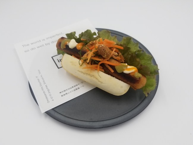 またドレッシングの販売とあわせて、imperfect表参道店舗では、米粉のパン、ヴィーガンフランクを使用した「野菜のドレッシングを使用したヴィーガンドッグ」も発売いたします。
