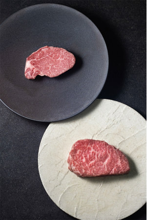 きめ細かくて柔らかく、肉色は鮮やかな紅赤色をしております。脂肪交雑があるのが特徴です。