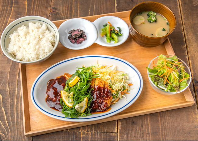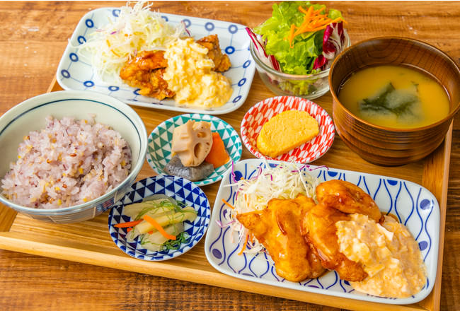 リニューアル後のおすすめメニューは、「宮崎県産桜姫鶏と鳥取県産大山鶏の究極のチキン南蛮定食」。国産のブランド鶏である「宮崎県産桜姫鶏」と「鳥取県産大山鶏」の2種類を使用した、まさに”究極のチキン南蛮”です。また、日本各地のご当地料理を使った定食がシーズンごとに入れ替わる「日本がうまい!」という企画では、名古屋名物の「味噌カツ」をメインにした定食が登場。さらに、米粉と静岡県産の茶葉を使った「”米粉”と”お茶”のパンケーキ」など、日本らしさのつまったお食事を存分に楽しむことができるラインナップとなっています。