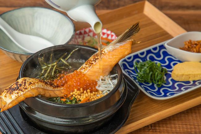 炙りサーモンハラスといくらの合わせ出汁茶漬け定食 1,350円(税込)