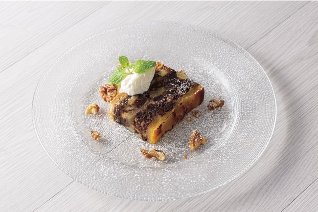 チェントペルチェントから冬の便りをお届けする「牡蠣と生ハムのスパゲティ」が期間限定で新登場。ぷりぷりの牡蠣とほどよい苦みのきいた春菊をシンプルなオイルベースで仕上げ、生ハムとライムをあしらった、味と香りの変化をお楽しみいただける一品です。季節のデザートは、ラム酒が香るリンゴの生地を、サクサクのパイ生地と軽く炙ったリンゴで挟んだ「リンゴとラム酒のケーキ」も期間限定でご用意しております。
