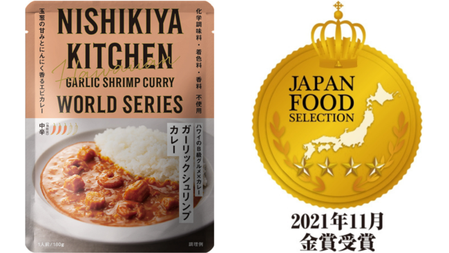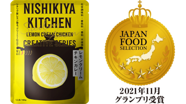 レトルト食品メーカー株式会社にしき食品(本社:宮城県岩沼市、代表取締役:菊池 洋)の自社ブランドNISHIKIYA KITCHEN(ニシキヤキッチン)が販売している『レモンクリームチキンカレー』が、一般社団法人日本フードアナリスト協会主催の「ジャパン・フード・セレクション」にて最高位となる「グランプリ」を受賞しました。また、『ガーリックシュリンプカレー』も「グランプリ」に次ぐ「金賞」を同時受賞しました。