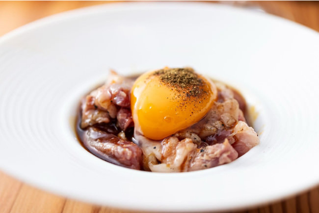 ・甘辛い生姜醤油に漬け込んで焼いたラム肉を、卵黄にくぐらせて食す一品。
