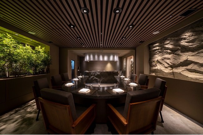 「都会の中にある大自然」をテーマにデザインしました。日常の中にある非日常を感じていただける設えは、一言で「洗練された空間美」。エントランスを抜けた先にあるレストランスペースは、料理の味わいを更に引き立てる圧巻の空間作りとなっています。