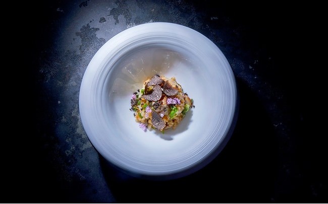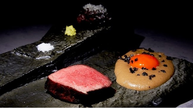 飛騨牛の中でも3%の希少な放牧された雌牛のみを使用することで、身が柔らかく濃厚なテイストに仕上がっております。牛の旨味を感じていただく為、先ずはお塩のみでお召し上がりいただいています。牛蒡のソースはシェフのスペシャリテの逸品。名古屋コーチンを豪快に混ぜ合わせ、黒トリュフの芳醇な香りと一緒にお肉をお召し上がりいただけます。