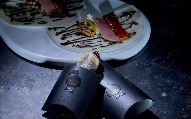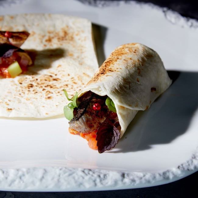 < トロ鯖の炙りとフォアグラの和風ブリトー >