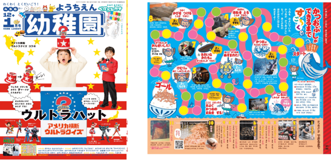 ヤマキ株式会社(本社:愛媛県伊予市 代表取締役社長:城戸善浩)は、小学館の幼児向け知育生活学習誌『幼稚園』の企業コラボ企画に参画しました。2021年11月16日に発売される『幼稚園 12・1月合併号』に登場します。11月24日の「鰹節の日」を前に、楽しみながらかつお節について学べるコンテンツを多数展開しています。