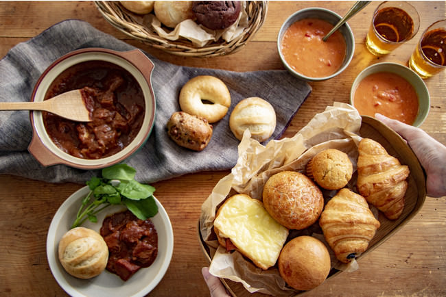 Pan&のオリジナルスープの中から、温めるだけでプレミアムなおうちディナーが叶う「オマール海老のビスク」と新作の「特製ビーフシチュー」をパンと合わせてセットにしました。パンはシンプルなものから人気の惣菜パン、菓子パンも入れて、ディナーはもちろん様々なシーンで活躍するバリエーション豊かなラインナップ。