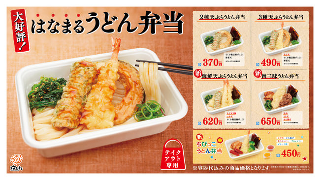 讃岐うどんチェーン「はなまるうどん」を展開する株式会社はなまる(本社:東京都中央区 代表取締役社長:門脇純孝、以下はなまる)は、2021年12月1日(水)より、全国(※一部店舗除く)のはなまるうどんにて、テイクアウト専用の「海鮮天ぷらうどん弁当」、「肉三昧うどん弁当」、「ちびっこうどん弁当」を発売いたします。