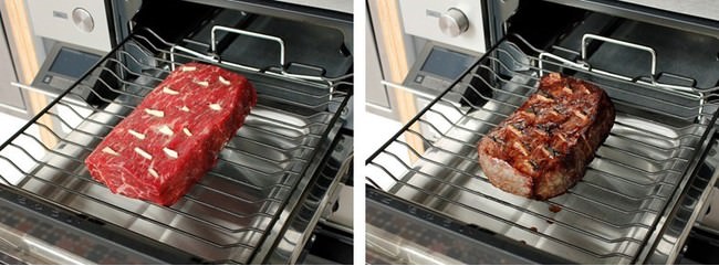 この後は余熱を利用して中まで火を通すため、これ以上表面を焼きすぎることはありません。つまり、表面は焼き色がつき、中は適度に火が入った状態を作ることができるのです。