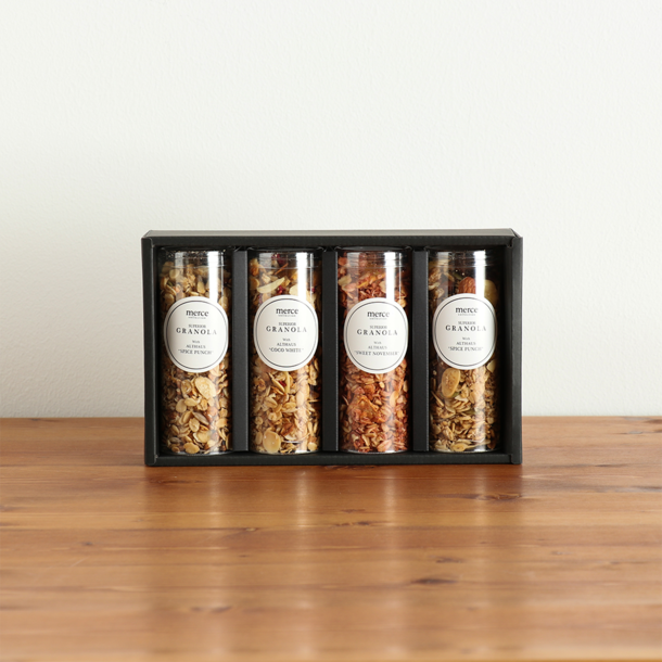 4種類のフレーバーをセットにしたギフトボックスは、すべての味を味わうことができる満足の1品です。通常ラッピングの他、クリスマス用ラッピングもご用意しております。