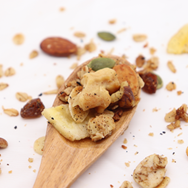 ALTHAUSのスパイス・パンチやシナモンパウダーなどのスパイスが効いた、チャイティテイストのグラノーラ。