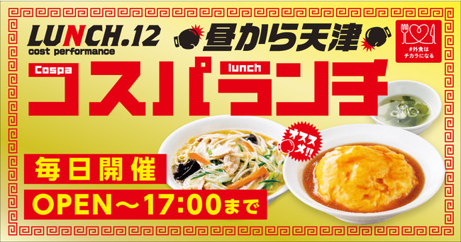 今回、「コスパランチ」に天津飯が登場。ふわふわ玉子の上に餡がたっぷりかかっていてご飯が進みます。ランチ限定あんかけもやしそばなどもご用意しております。