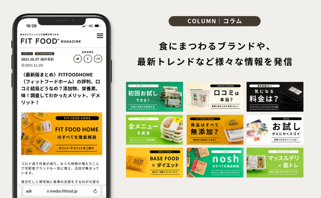注目の食ブランドに関する最新情報や、最新の食トレンドを発信する「コラム」と、商品単位の詳細な体験レポートをまとめた「商品レビュー」の2コンテンツを中心に情報発信いたします。