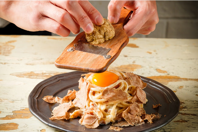 - キロ100万円!超貴重なイタリア産の白トリュフを使ったカルボナーラ