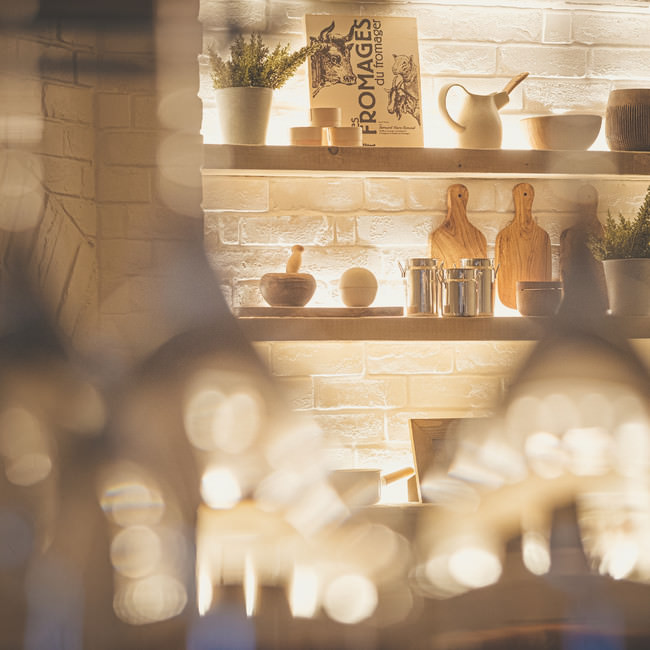 木の温かみが感じられる店内で、前菜からデザートに至るまでとことんチーズにこだわったお料理の数々をお召し上がりいただけます。陽の差し込むカフェ感覚のランチタイムが一変して、ディナータイムは落ち着いた雰囲気に変わります。ご友人とのお食事や、デート、誕生日のお祝いでのお食事でぜひご利用ください。