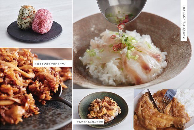 例えばおにぎりの場合、アツアツでも冷めても美味しいことはもちろん、お米の粒感がきちんと感じられ、具材とお米をしっとりとなじませることが調理の際の重要なポイントとなります。そこで、米粒感が際立つ「晴天の霹靂」と、粘り気のある「だて正夢」を、7:3の配合で混ぜて炊くことで、アツアツでも冷めてもおいしく、具材の美味しさも際立たった、つややかなおむすびが完成します。レシピブックでは、料理の作り方だけでなく、お米をブレンドする方法や、お米を美味しく炊くコツも記載しています。冊子の内容を参考にして、今までの料理とはひと味ちがうお米の体験を是非味わってみてください。