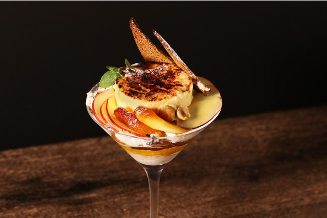 キャラメルアイスやローストした紅玉林檎のほろ苦さが、自家製ヌガーグラッセ、紅茶のブランマンジェと見事に調和します。
