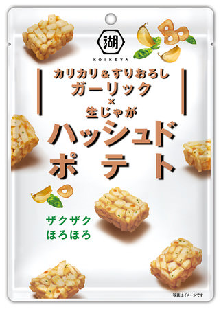 今回の新商品では、既存のポテトチップスにはできない「具入り」生じゃがブランドとしての特徴を活かし、コロナ禍における生活環境の変化により需要の高まりを見せる「ガーリック味」を、ハッシュドポテトならではの形で表現。既存スナック市場のスタミナ&ガッツリ系ガーリック商品群から一歩抜け出す本格的な味作りを目指し、強さだけでなく奥行きのある旨みがきいた「ニュースタンダードガーリック味」を開発しました。“カリカリ”としたガーリックチップと“すりおろし”のガーリック、ダブルの具材が生み出す奥深い味わいを、女性にも手に取っていただきやすいジェノベーゼ風の味わいに仕上げています。