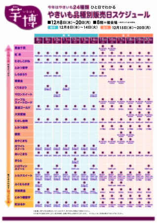 ※各やきいもは、販売日が異なります。「やきいも品種別販売日スケジュール」一覧表をご確認ください。