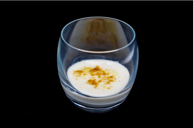 甘いシンプルな味わいのスープですが、仕上げに少しだけカラスミを振っておりますので、甘さの中に塩辛さを感じられるスープになっております。