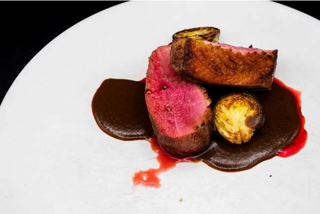甘い根セロリのピューレと、鴨の肝を使った赤ワインソースをかけ、クラシックなフレンチスタイルで仕上げました。