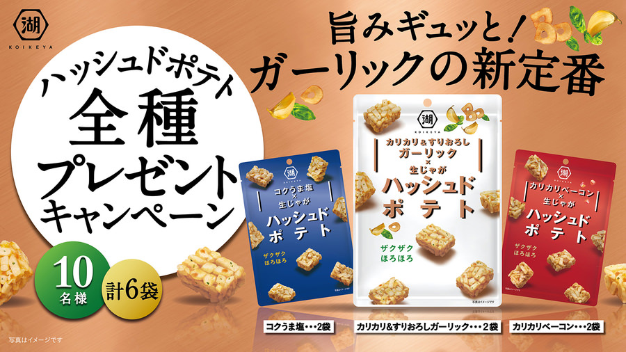 - 旨みギュッと! ガーリックの新定番 ハッシュドポテト全種プレゼントキャンペーン