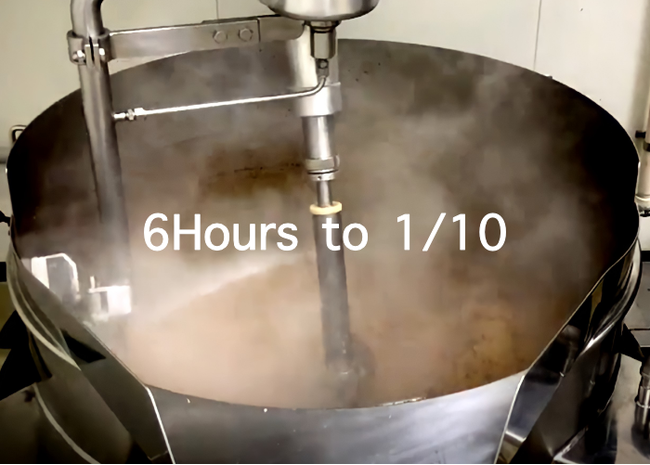 味の決め手は、直火釜で6時間、1/10になるまで炒めたあめ色玉ねぎによる、深い甘みと微かな苦味。加工の手間もさることながら、少しでも火加減を間違えればバランスが崩れてしまうという繊細さが求められるため、簡単には真似も自動化もできません。だからこそ、味には強い自信があります。
