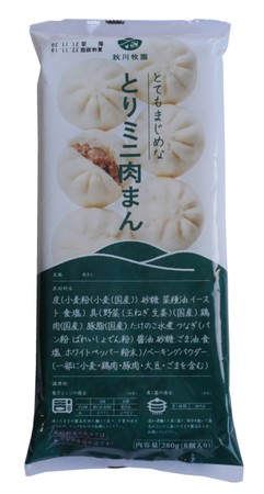 秋川牧園(本社 : 山口県山口市)の鶏肉を使用した「とり肉まん」「とりミニ肉まん」を12 月6 日より発売いたします。秋川牧園では、エサにこだわり、開放型鶏舎で抗生物質・抗菌剤を投与しない、完全無投薬飼育で若鶏を飼育しています。そんな私たち自慢の鶏肉をしっかり味わえる肉まんとなっています。