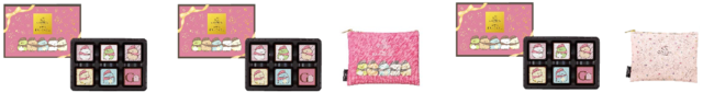 さらに、ゴディバの制服をまとった『すみっコぐらし』の人気キャラクター達が描かれた限定チョコレートをアソートした「ゴディバ × すみっコぐらし アソートメント」では、ポーチ付きのアイテムも登場します。