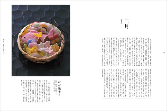 本書は一老舗の“現在進行形”の菓子帖でもあるのですが、12か月それぞれのお菓子には、この祇園町に育てられた菓子店ならではの「行事・歳時」の思い出が柔らかい文章でニュアンスを添えます。色彩にも形にも「季節」が投影された和菓子は、まさに手のひらの上の小宇宙。しかし、今西さんはこう綴ります。「お菓子は基本、副(そ)えものでなければいけないと思っています。人と人の間にあって、その場を補うもの。和やかにするもの」「お菓子は人と人の間にあってその間を埋めるコミュニケーションツール、主役ではない」と……。