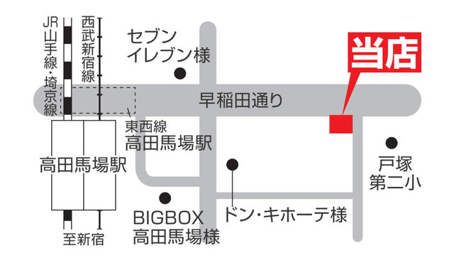所在地 東京都新宿区高田馬場1-26-12 高田馬場ビル1F