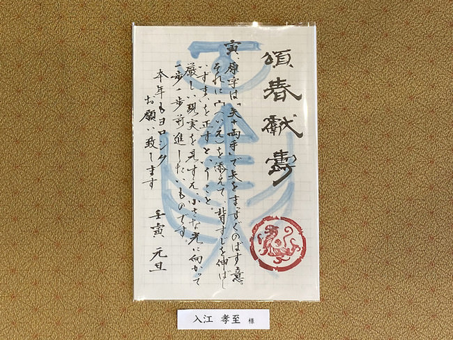今回の企画は熊谷市書人連盟様の「多くの人に書を親しんでいただきたい」という思いと、梅林堂の作品製作に励まれる書道家皆様の応援が何かできないかという思いから実現致しました。どれも素晴らしい作品ばかりでございます。2022年の年賀状の参考にして頂けますと幸いです。