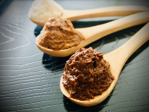 手前から長期熟成、中期熟成、未熟成の酒粕『奈良漬クリームチーズ』には長期熟成酒粕を使用