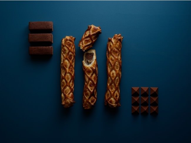 北海道産小麦とバターを730層に織り込んだ、長さ23cmのロングスティックパイ生地に、ルタオ人気No.1チョコレート「ロイヤルモンターニュ」と新千歳空港店限定「ロイヤルモンターニュブラウニー」を組み合わせました。