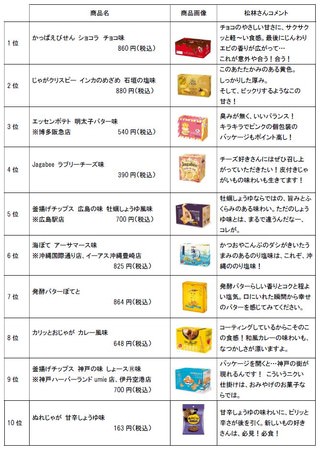 松林千宏さんが選んだ【一度は食べていただきたいCalbee+お菓子ランキングベスト10】※は店舗限定販売