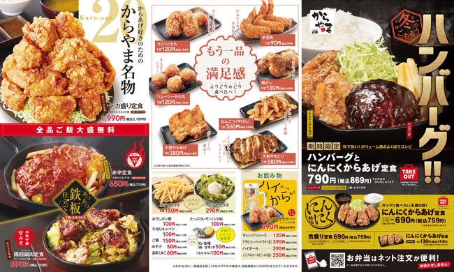 とんかつ専⾨店「かつや」などを展開するアークランドサービスホールディングス株式会社の⼦会社、エバーアクション株式会社(本社:東京都千代⽥区/代表:伊藤 永)は、2021年12月13日(月)より国内の「からやま」にて、「ハンバーグとにんにくからあげ定食」の販売を開始いたします。