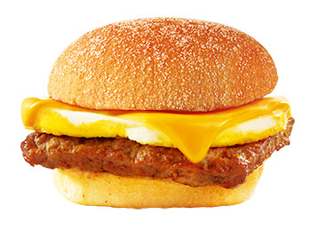 しっかりとした味わいのポークパティと丁寧に焼き上げたタマゴ、濃厚なチェダーチーズを組み合わせた、モーニングにぴったりの商品。もちもち食感のバンズと具材の相性は抜群!
