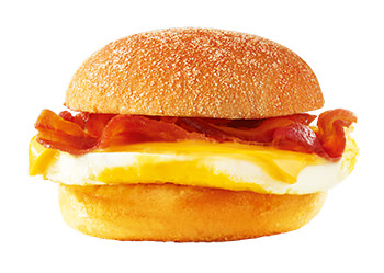 アップルウッドで風味良く燻製したカリカリベーコンと店舗で丁寧に焼き上げたタマゴ、濃厚なチェダーチーズを組み合わせた、軽めに食べたい朝にぴったりの1品。