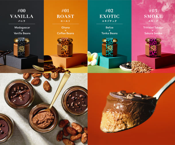 プロダクト第一弾として、生チョコの濃厚さとプリンのなめらかさが融合した、全く新しいカカオスイーツ「カカオクリュ」を開発しました。産地ごとに異なる個性豊かなカカオと、香り立つ副素材のマリアージュと温度によって異なる4つの食感をお楽しみいただけます。