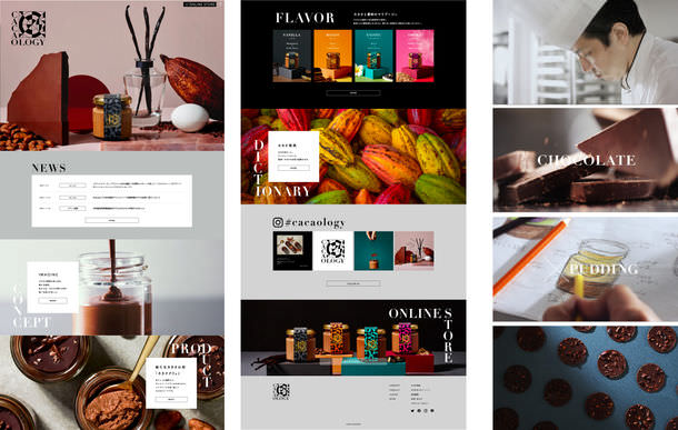 WEBデザインでは、ロジックと想像力をテーマに、カカオの個性を鮮やかな写真で表現しながら、ユーザーの操作性など使いやすいデザインに落とし込んでいます。ブランドや商品の説明はもちろん、オウンドメディア「カカオロジスト ノート」や「カカオ辞典」を掲載し、カカオやチョコレートにまつわる知識と商品をより深く楽しむための情報を発信していくサイトとしています。