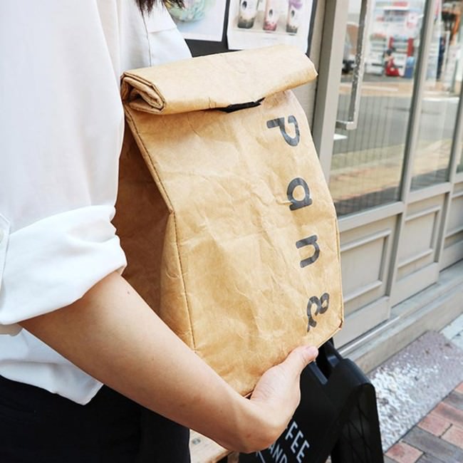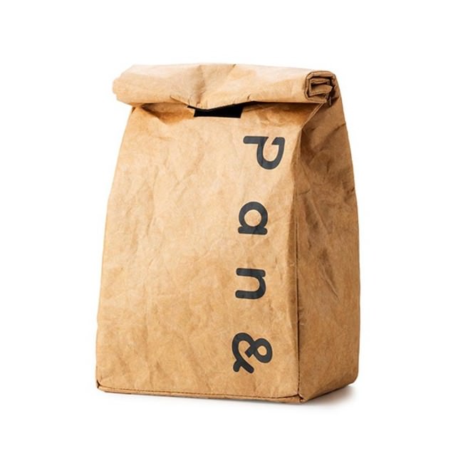 紙のような風合いながら、耐水や強度に優れた保冷・保温兼用のクラフトバッグ。バッグの開閉は、紙袋のようにくるくるまるめて留める、マジックテープ式です。