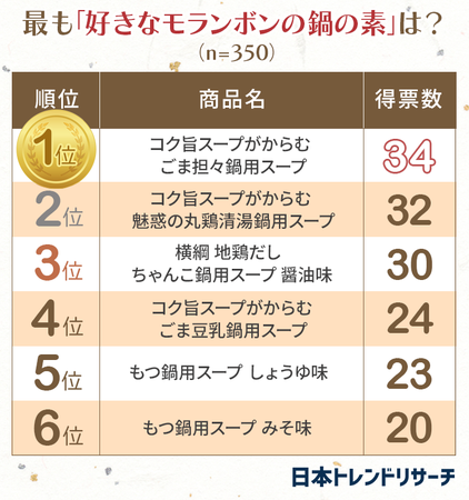 皆さんのお気に入りの「モランボンの鍋の素」はランクインしましたか?