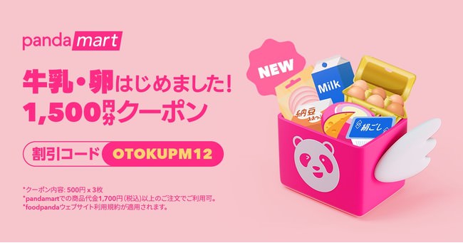 今回pandamart内の全商品のお買い物で使える「合計1,500円分**クーポン」をご用意しました。
