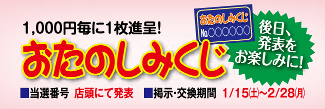 「歳の大市」期間中にお買上げ1,000円(税込)ごとに1枚「おたのしみくじ」を進呈します。