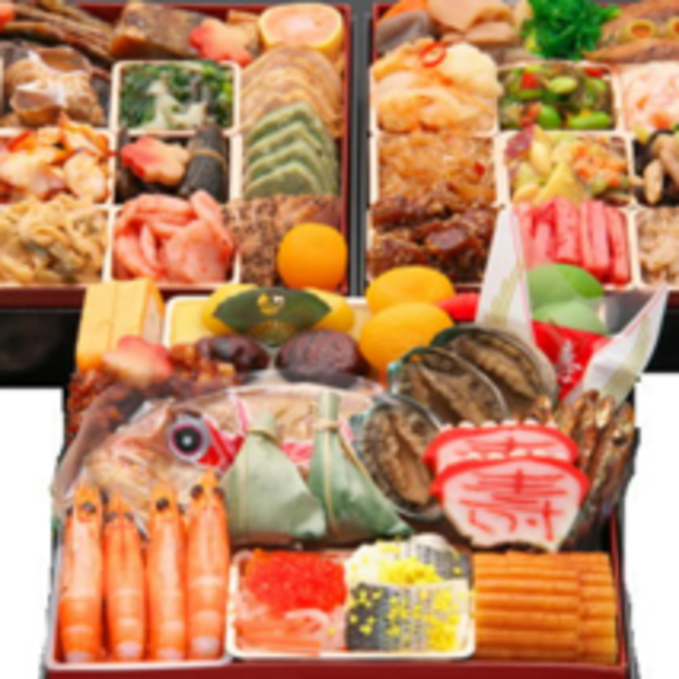 Shop/Item: [まるきん寿]和洋中三段重おせち吉祥 7寸 55品入 3~4人前