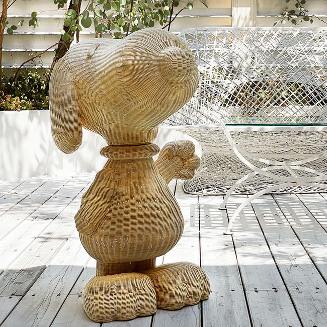 PEANUTS HOTELのエントランスでお出迎えしてくれるスヌーピーがラタン素材で登場。